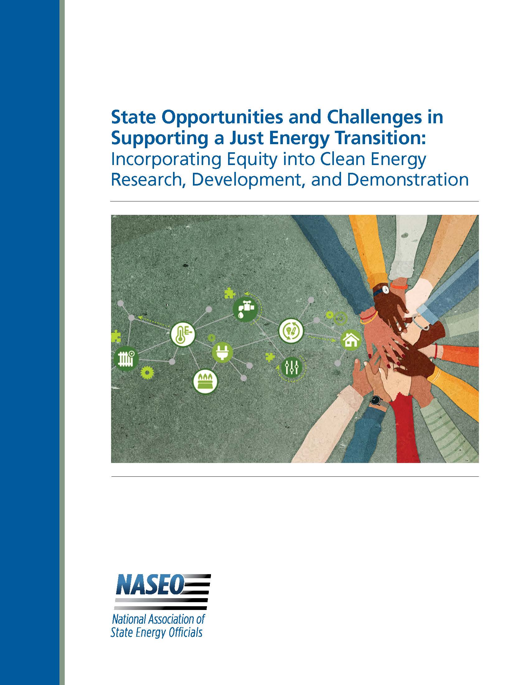 On June 17, 2024, NASEO released a report, State Opportunities and Challenges in Supporting a Just Energy Transition: Incorporating Equity into Clean Energy Research, Development, and Demonstration with support from the U.S. Department of Energy Office of Electricity. This report is one of five authored by NASEO, the National Association of Regulatory Utility Commissioners (NARUC), and the National Governors Association (NGA) summarizing key themes, emerging efforts, and takeaways from an April 2022 State Energy Justice Roundtable hosted in Washington, DC. Participants in the Roundtable included federal and state decision-makers, members of community-based organizations, and subject-matter experts exploring current efforts by states to articulate and incorporate energy justice concerns into their policy, programmatic, and regulatory processes.