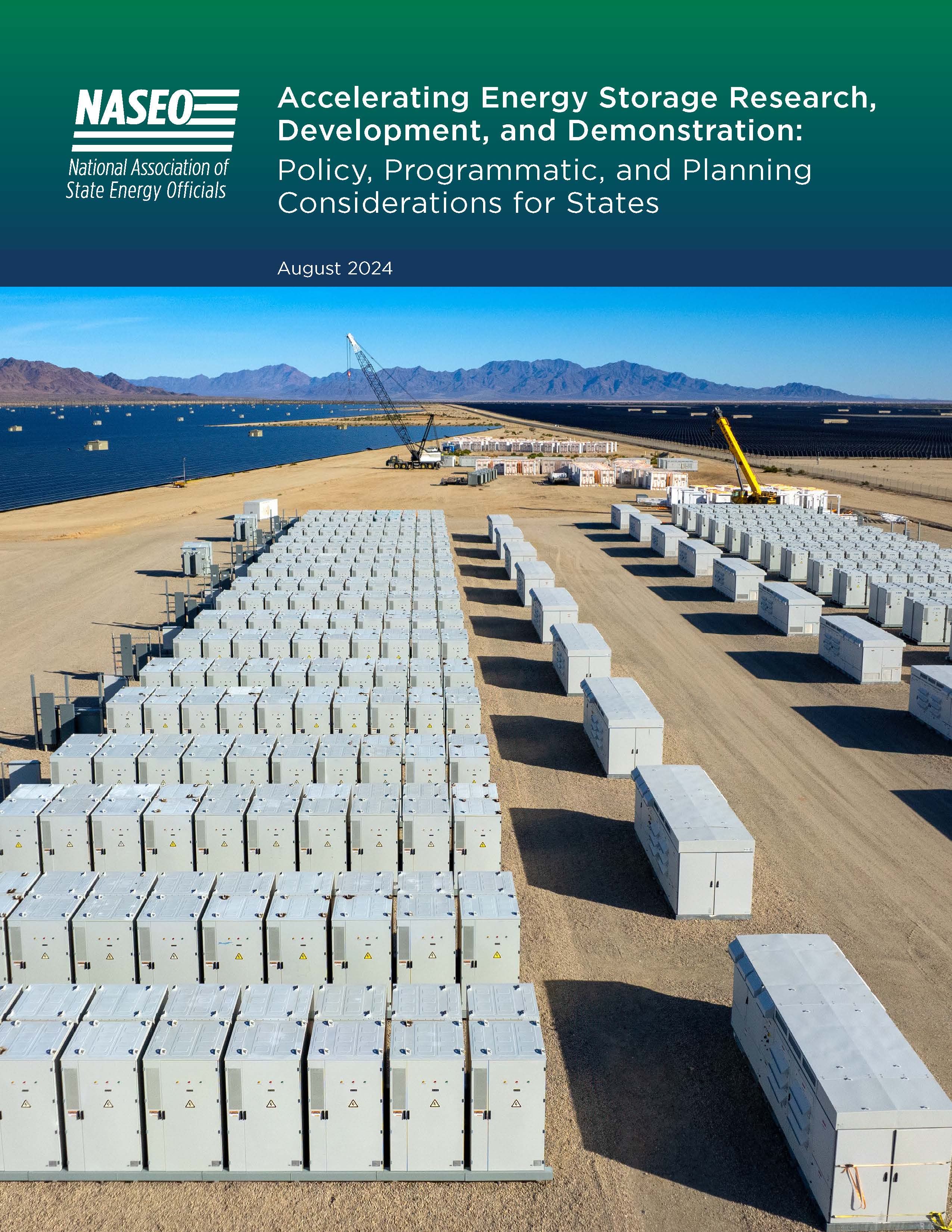 On August 28, 2024, NASEO, with support from the U.S. Department of Energy’s Office of Electricity, released a guide on Accelerating Energy Storage Research, Development, and Demonstration: Policy, Programmatic, and Planning Considerations for States. As the United States moves to electrify and decarbonize the electric grid, energy storage will be key to providing reliability and grid flexibility. This guide provides an overview of different energy storage technologies (including battery storage, flywheels, and pumped hydropower) and looks at the potential for long-duration energy storage including iron-air batteries and clean hydrogen. State Energy Offices play an important role in advancing the research, development, and demonstration (RD&D) of these energy storage technologies through grant and incentive programs, cost-benefit analysis and market assessment studies, state energy storage roadmaps, engagement with investor-and-consumer owned utilities, and collaboration with DOE and the private sector. This guide provides an in-depth analysis of these different roles with case studies and examples from across the country. It closes with an overview of key equity considerations and what drivers are needed to advance the market for energy storage. Please visit the NASEO Storage page for more information on energy storage and click here to view the publication.