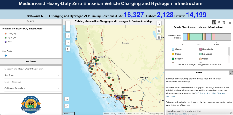 According to Hannon Rasool, the Director of CEC’s Fuels and Transportation Division, “This new dashboard will be an invaluable tool in creating transparency, showing the ongoing progress in deploying infrastructure, and evaluating MDHD ZEV infrastructure needs across the state.”
