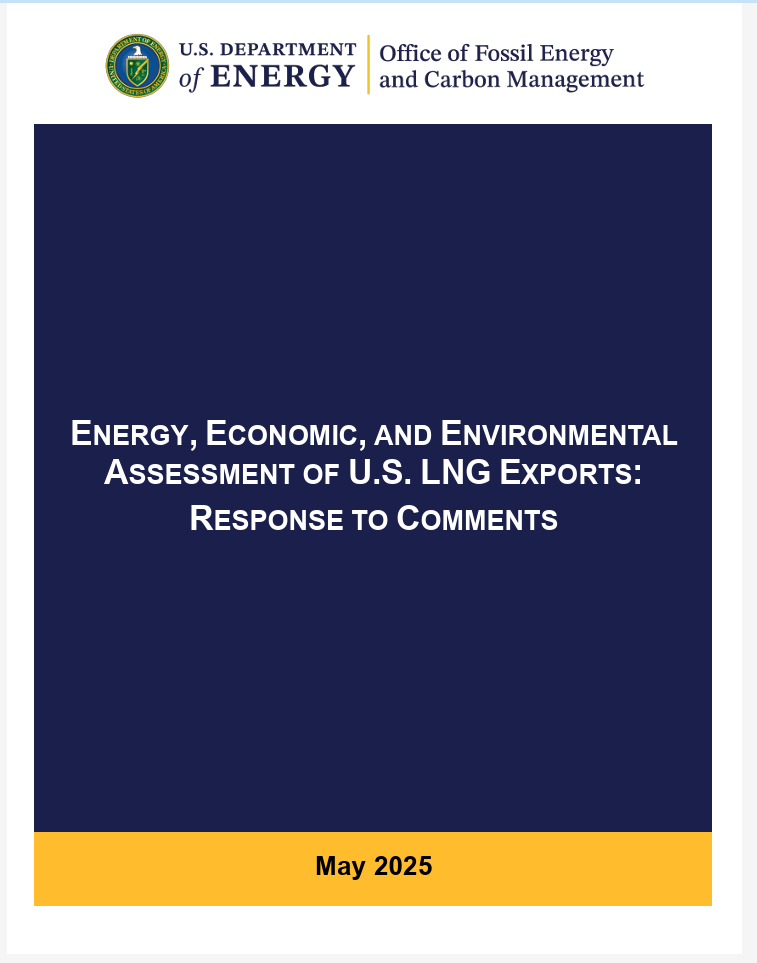 On May 19, 2025, the U.S. Department of Energy (DOE) Office of Fossil Energy and Carbon Management released its Response to Comments on the 2024 LNG Export Study: Energy, Economic and Environmental Assessment of United States LNG Exports. Key findings outlined in the study include: the United States has a robust natural gas supply chain sufficient to meet growing levels of exports while minimizing impacts to domestic prices; growing LNG exports increases domestic products and expands jobs; and increasing United States LNG exports enhances domestic and international security with no discernible impact on global greenhouse gas emissions. DOE plans to utilize the study to inform its public interest review, and final decisions, of certain applications to export LNG to countries that the United States does not have free trade agreements with.
